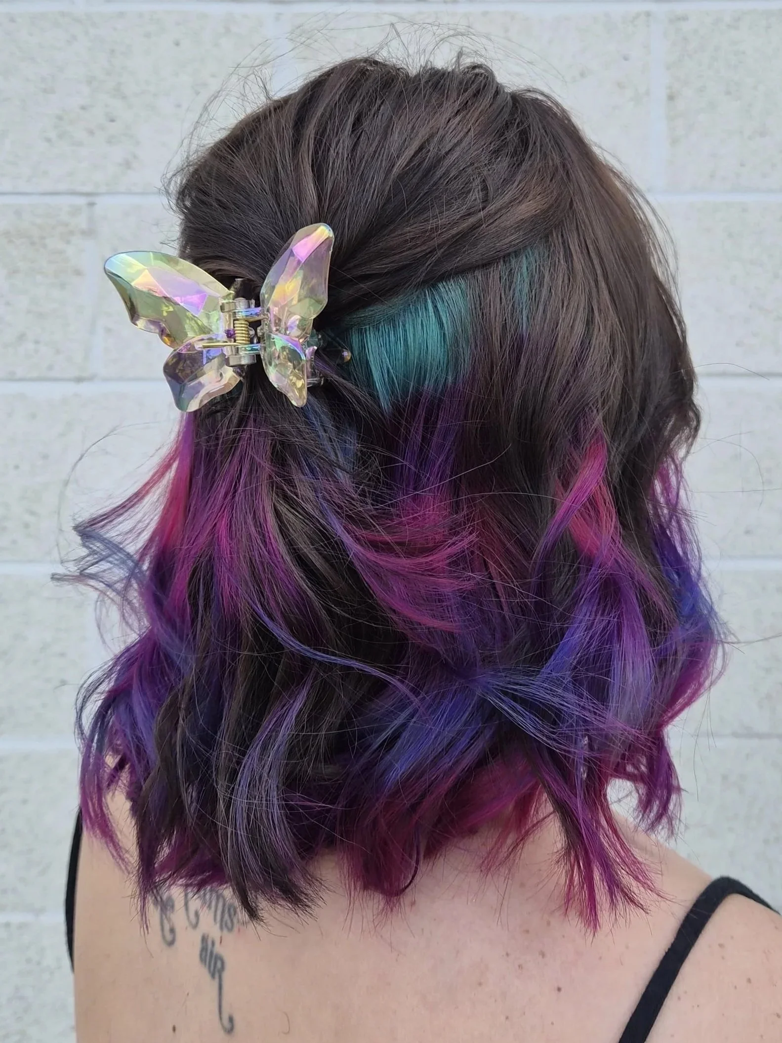 A Touch of Magic, a Kiss of Color. Our Sun Kissed Fantasy is a beautiful fusion of partial highlights and fantasy color that brings a radiant, sunlit glow to your hair, with a fun, unexpected twist. This service is perfect for those who want the soft, effortless look of sun-kissed highlights, but with a playful splash of fantasy colors like pastel pinks, lavender, turquoise, or even soft rainbow hues. We strategically place the highlights around your hair to mimic the way the sun naturally brightens your strands, while blending in vivid, dreamy shades to add depth and dimension. Whether you’re looking for a subtle pop of color or a more dramatic, beachy effect with a touch of fantasy flair, our Sun Kissed Fantasy service delivers a look that’s uniquely you. The result is a natural-looking color that’s vibrant, glowing, and full of personality.