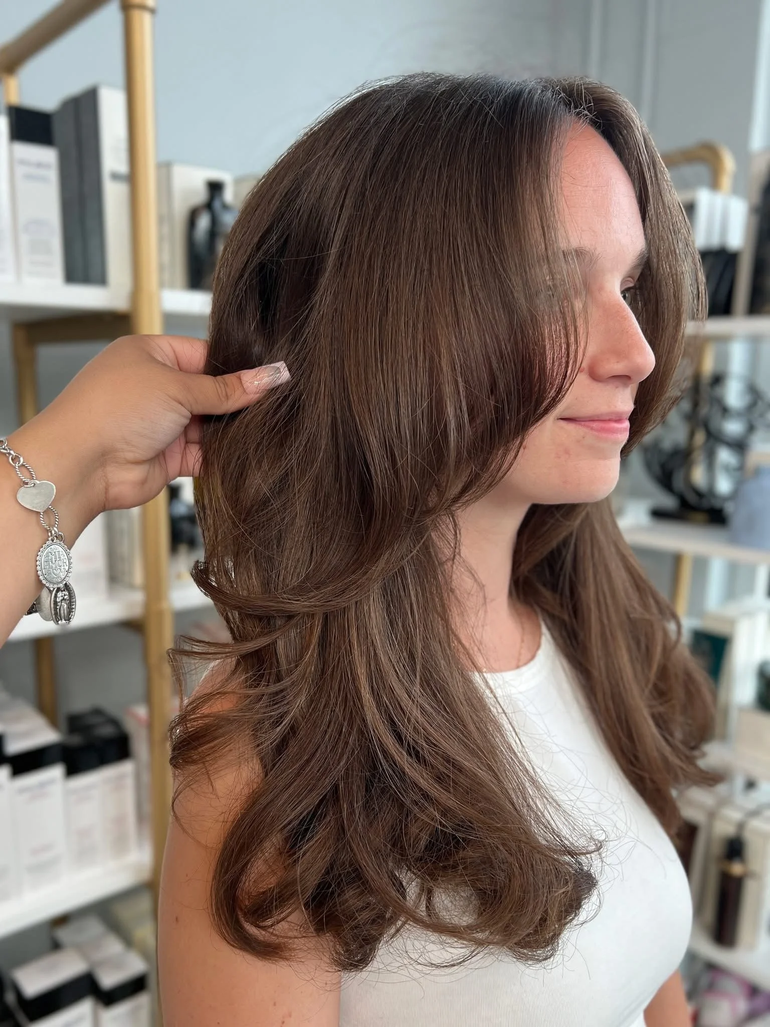 Gloss/Toner – Enhances shine, refines tone, and perfects your custom brunette shade.